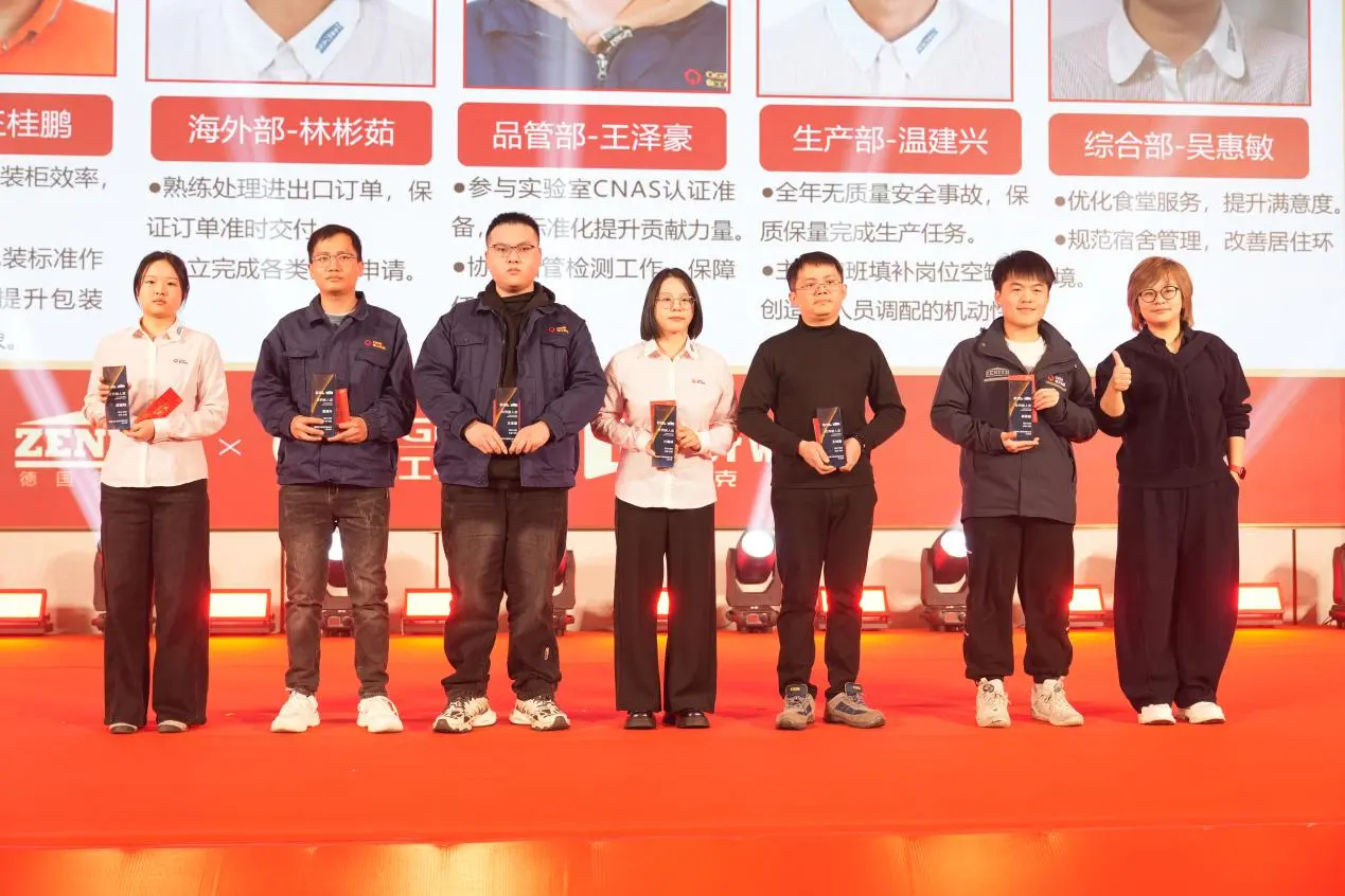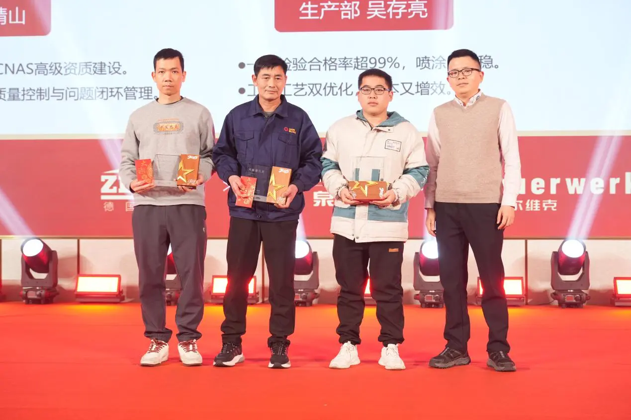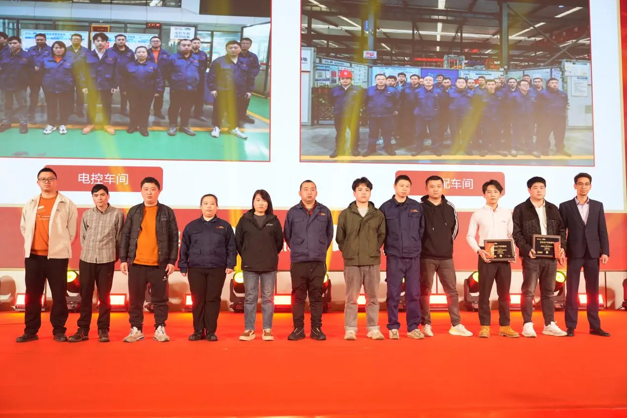 Pagkatapos ay pinuri ng kumperensya ang mga koponan at indibidwal na mahusay na gumanap sa pagpapabuti ng pamamahala, produksyon ng kaligtasan, at pagmamanupaktura noong 2025. Ang Departamento ng Quality Control, Departamento ng Digitalization at Business Intelligence, at Departamento ng Teknolohiya ay tumanggap ng parangal na Outstanding Teams for Improvement Proposals; ilang empleyado ang ginawaran ng "Mga Eksperto sa Pagpapahusay"; nakatanggap ang Electrical Control Workshop at Assembly Workshop ng Outstanding Teams for Safety Production award; at ang Digitalization and Business Intelligence Department ay nakatanggap ng Excellent Team for Lean Production award. Ang bawat parangal ay naglalaman ng mga resulta ng pagtutulungan ng magkakasama at patuloy na pagpapabuti.
