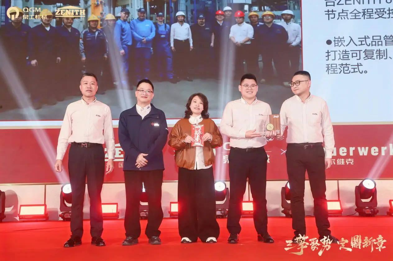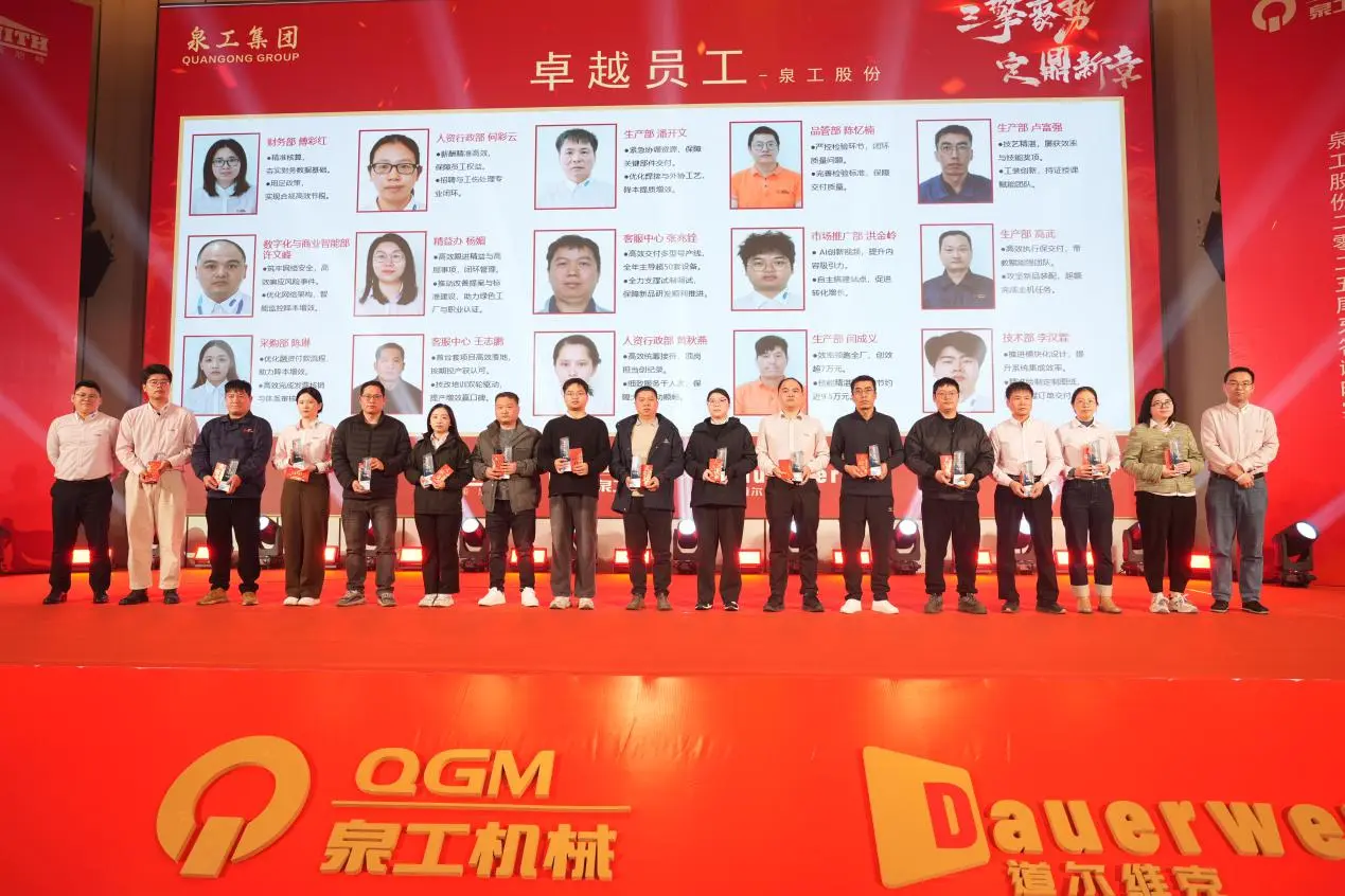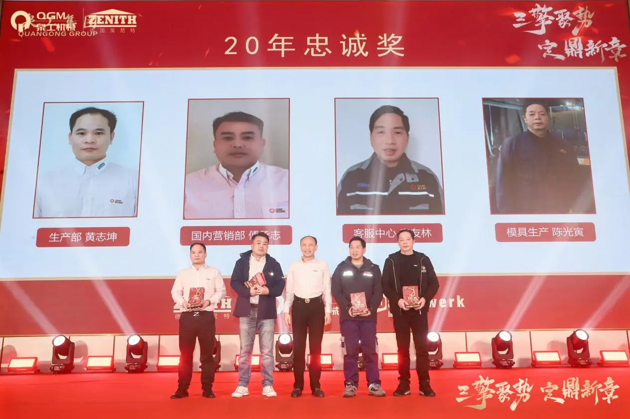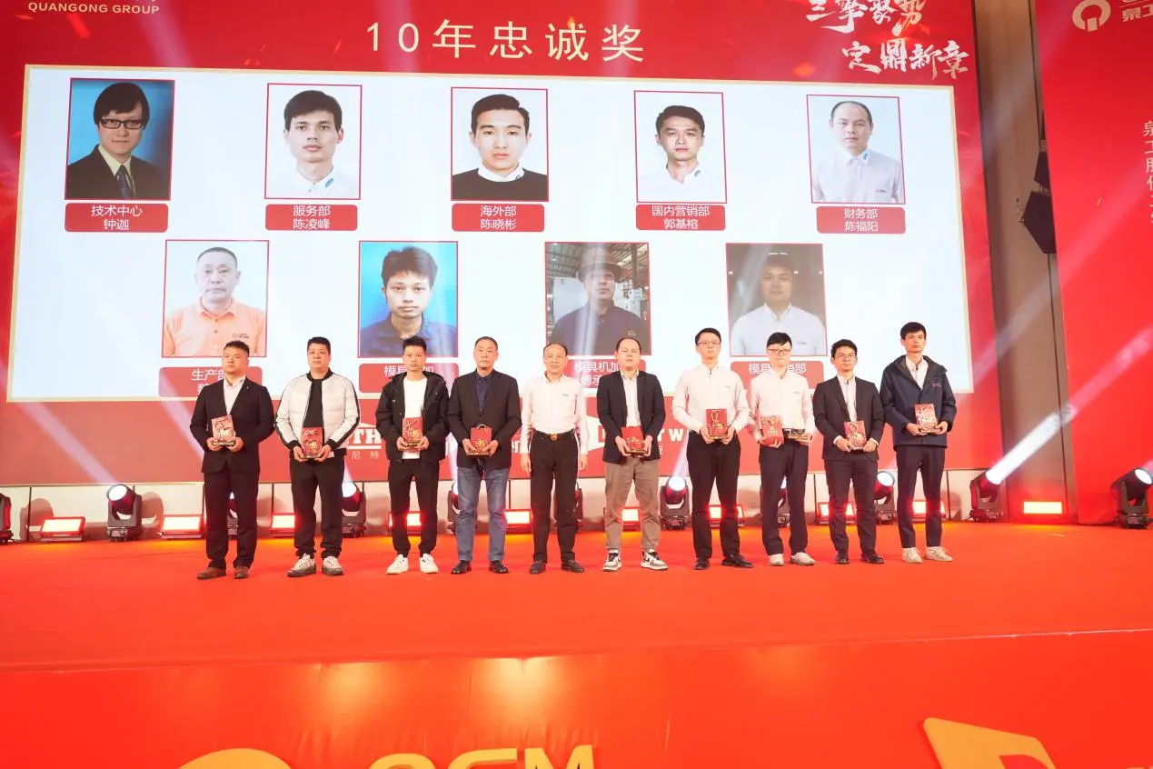 Sa taunang pagpupulong, ginanap din ang isang grand awards ceremony para sa 10-year, 20-year, at 30-year loyalty awards. Umakyat sa entablado ang isang grupo ng mga empleyado na magkasamang lumaki sa kumpanya at lumaki, na ganap na ipinakita ang matibay na pundasyon ng tuluy-tuloy na pag-unlad ng Quangong Machinery Co., Ltd. at ang nagtatagal nitong kultura ng korporasyon.
