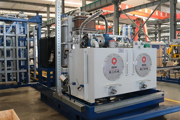 Ang QGM ZN1000C-2 na may sukat na papag na 1200x950mm, ito ang makina na idinisenyo sa Germany ZENITH at ginawa sa China, mayroon itong 4 na Servo motor sa mesa at dalawang motor na Italyano sa itaas, kaya ganap na ginagarantiyahan ang paglaban ng buong Single Pallet Machine. Mayroong 2 airbag sa bawat panig, 4 sa kabuuan. Ang base ng amag ay naayos sa pamamagitan ng pagpapalaki ng airbag at paghigpit sa nakapirming base at ang tuktok ng tamper ay nilagyan din ng pneumatic locking device, na maaaring magbago ng amag nang mas mabilis sa loob ng 20 min. Ang mga elektronikong sangkap ay ginagamit ng mga internasyonal na tatak, Siemens, at para sa bakal na konektado sa kongkreto, ang tatak na HARDOX mula sa Sweden ang ginagamit. Bilang karagdagan, ang mga tubo ng langis at mga balbula ng hydraulic system ay ginagamit ng mga tatak ng Italyano, atbp.
